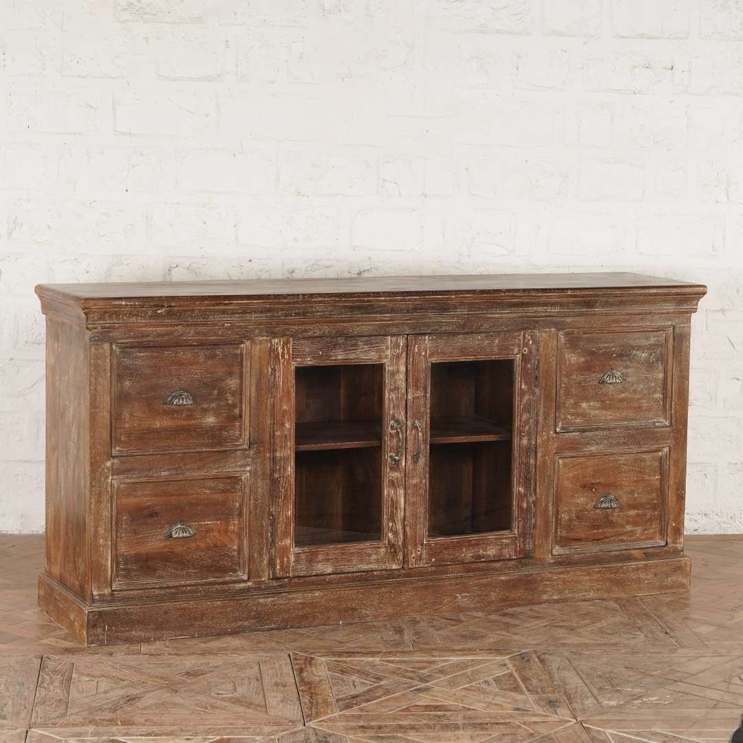 Two Glass Doors With Four Drawer Sideboard Made Using 100+ Year Old Teak Doors.