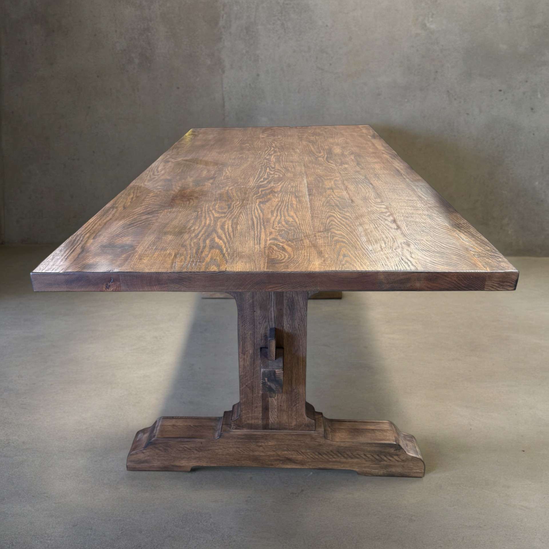 Introducing Our Hastings Oak Dining Table Made From Solid Oak with a 2″ Thick Top and Simple Trestle Leg